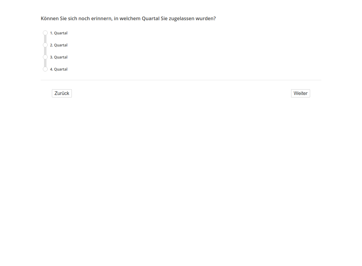 Können Sie sich noch erinnern, in welchem Quartal Sie zugelassen wurden?