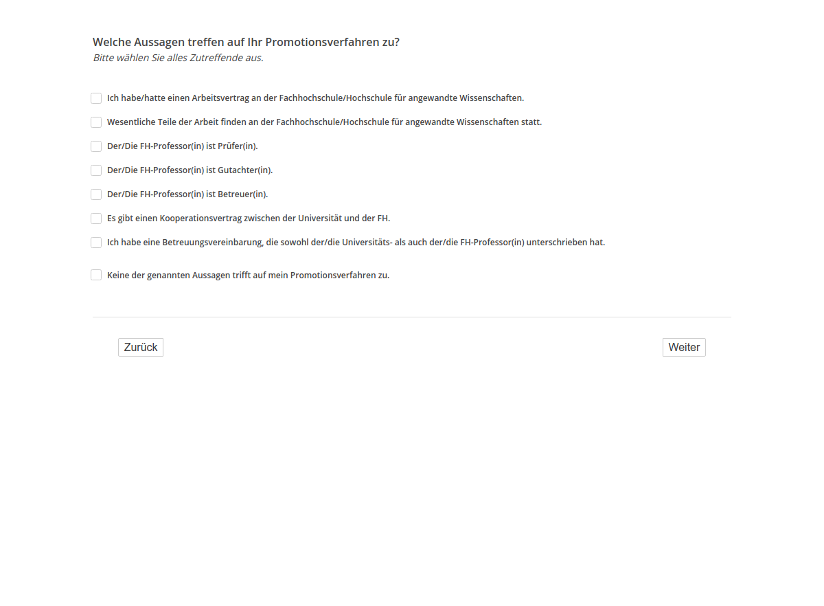 Welche Aussagen treffen auf Ihr Promotionsverfahren zu?
