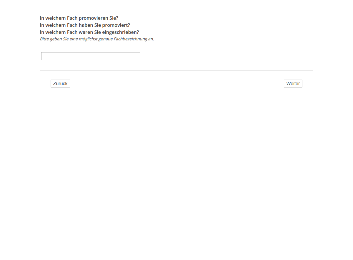 In welchem Fach promovieren Sie?/In welchem Fach haben Sie promoviert?/In welchem Fach waren Sie eingeschrieben?