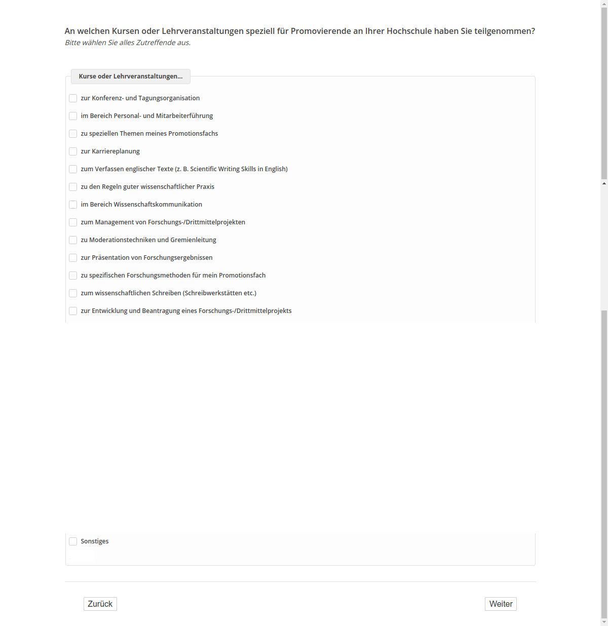 An welchen Kursen oder Lehrveranstaltungen speziell für Promovierende an Ihrer Hochschule haben Sie teilgenommen?