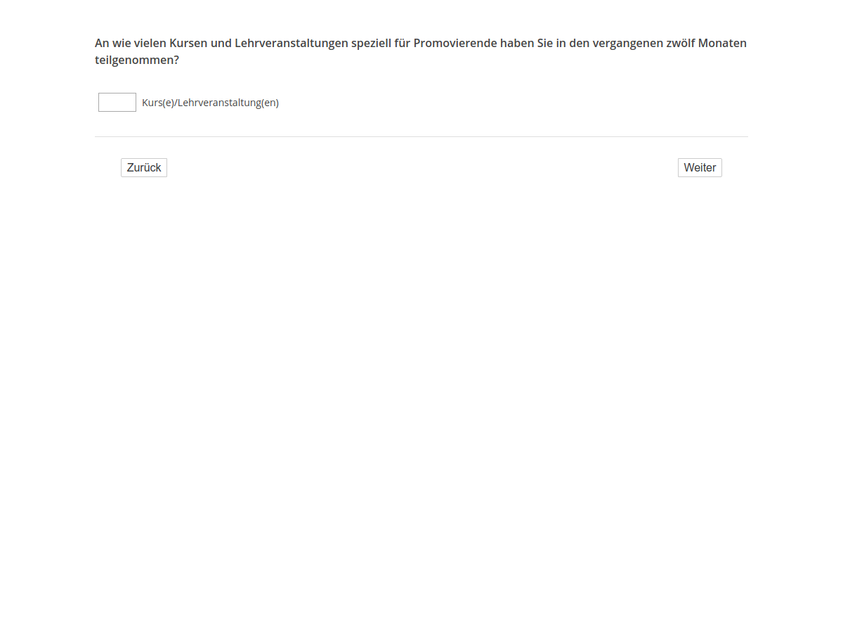 An wie vielen Kursen und Lehrveranstaltungen speziell für Promovierende haben Sie in den vergangenen zwölf Monaten teilgenommen?