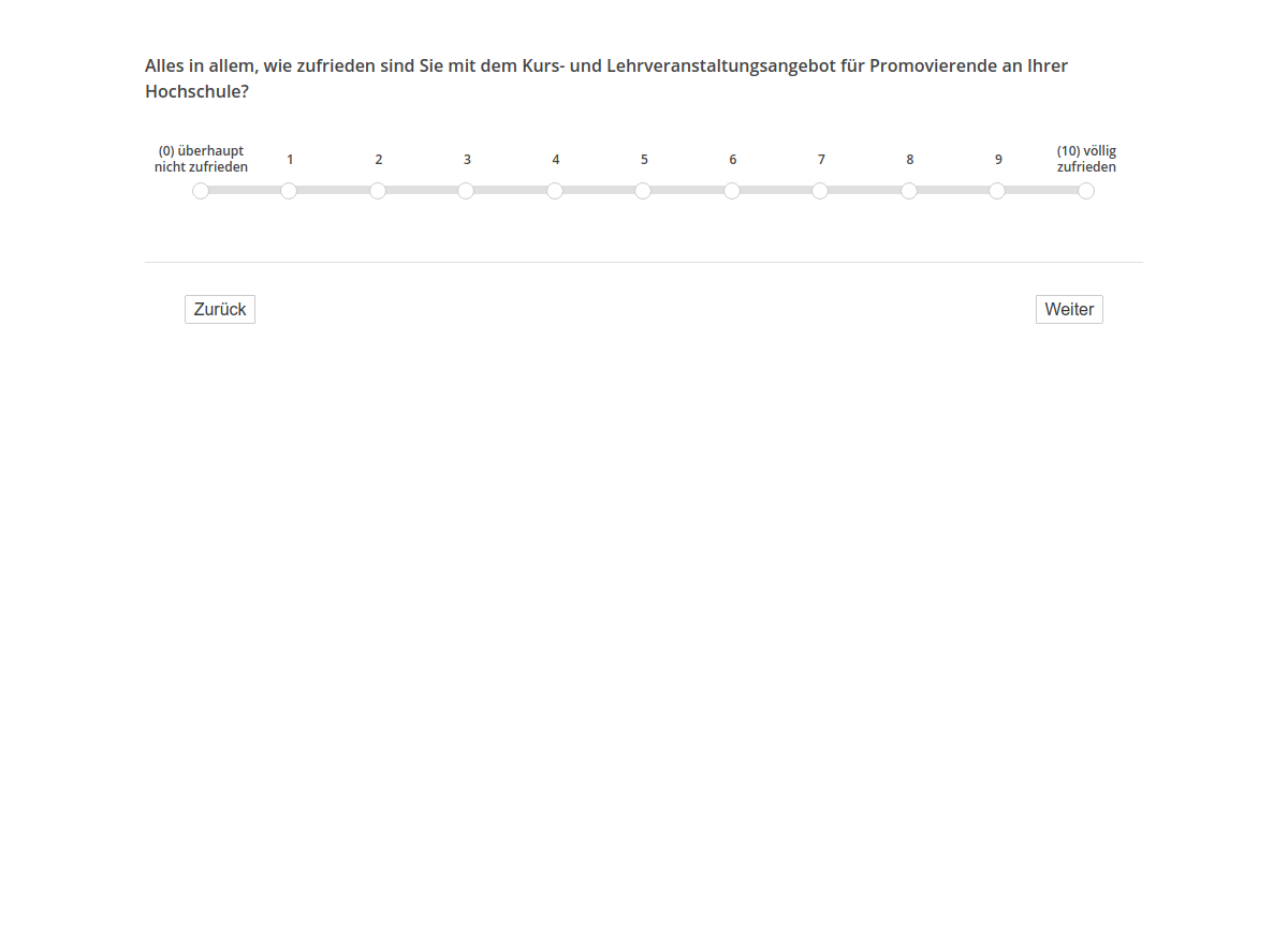 Alles in allem, wie zufrieden sind Sie mit dem Kurs- und Lehrveranstaltungsangebot für Promovierende an Ihrer Hochschule?