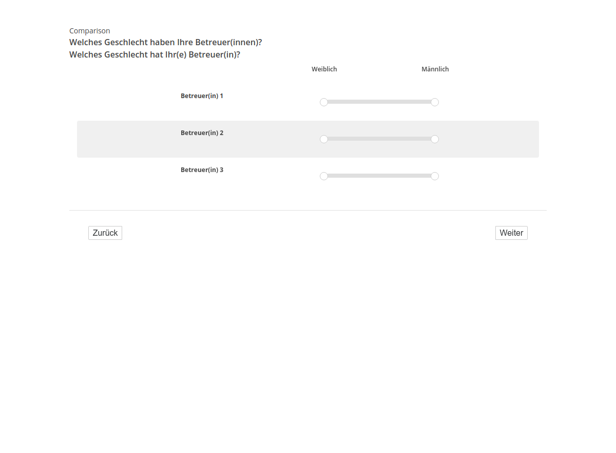 Welches Geschlecht haben Ihre Betreuer(innen)?/Welches Geschlecht hat Ihr(e) Betreuer(in)?