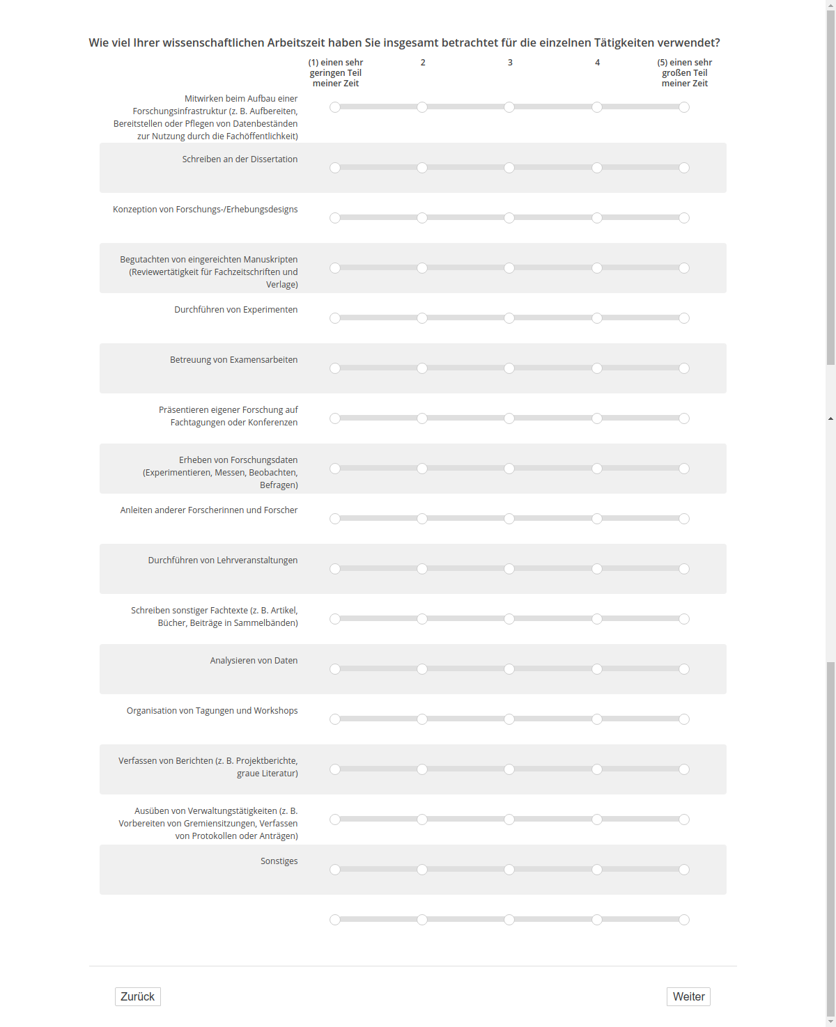 Welche der folgenden Tätigkeiten haben Sie in den letzten zwölf Monaten im Rahmen Ihrer Promotion oder Ihrem sonstigen wissenschaftlichen Arbeitsalltag ausgeübt?
