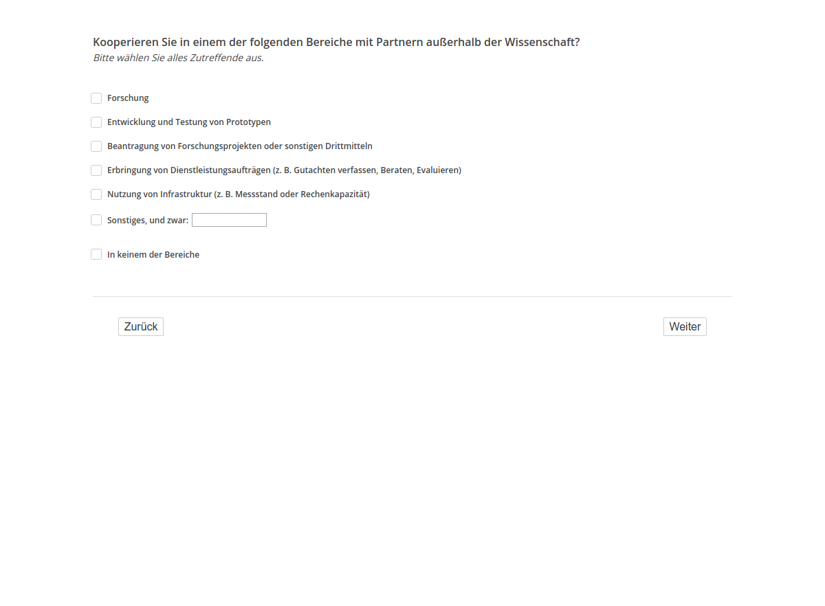 Kooperieren Sie in einem der folgenden Bereiche mit Partnern außerhalb der Wissenschaft?