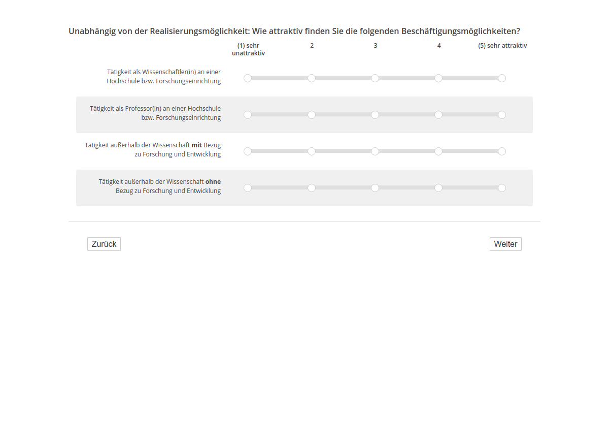 Unabhängig von der Realisierungsmöglichkeit: Wie attraktiv finden Sie die folgenden Beschäftigungsmöglichkeiten?