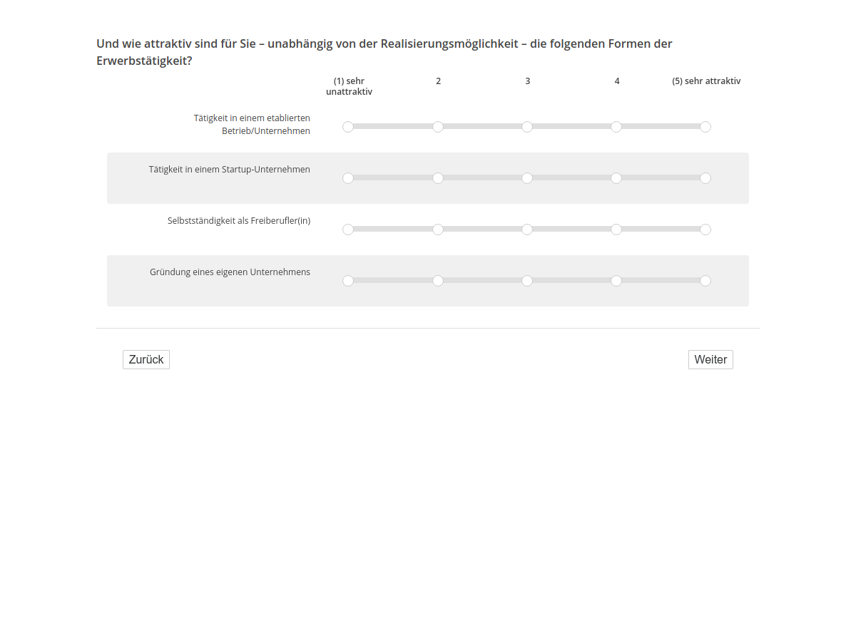 Und wie attraktiv sind für Sie – unabhängig von der Realisierungsmöglichkeit – die folgenden Formen der Erwerbstätigkeit?