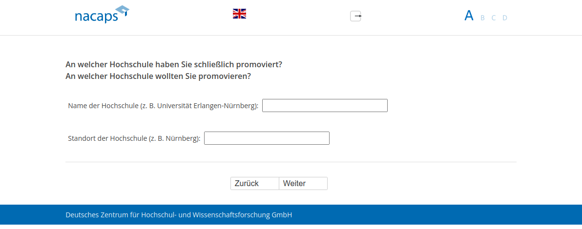 An welcher Hochschule haben Sie schließlich promoviert?,An welcher Hochschule wollten Sie promovieren?