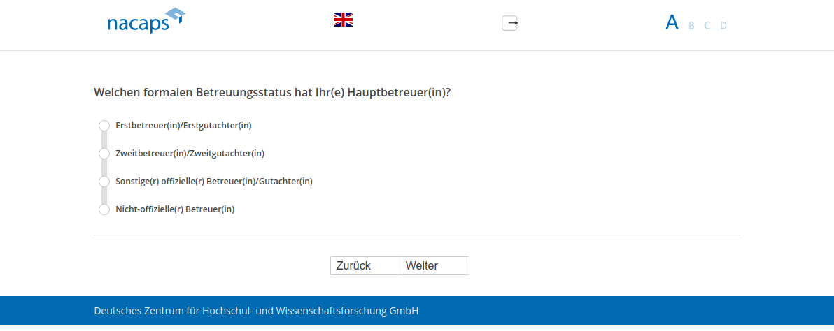 Welchen formalen Betreuungsstatus hat Ihr(e) Hauptbetreuer(in)?