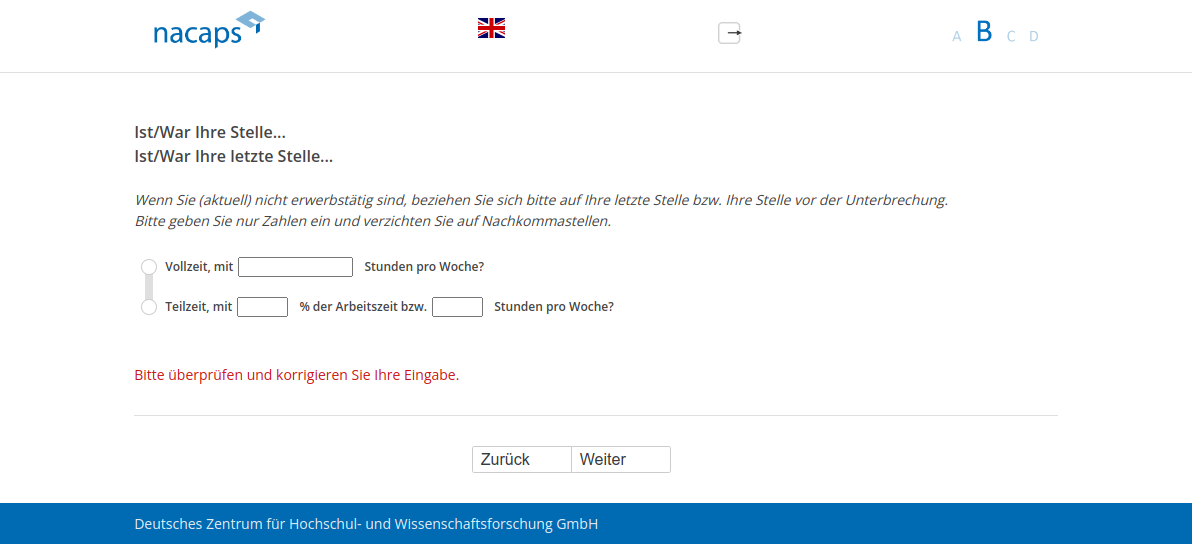Wenn Sie (aktuell) nicht erwerbstätig sind, beziehen Sie sich bitte auf Ihre letzte Stelle bzw. Ihre Stelle vor der Unterbrechung.,Bitte geben Sie nur Zahlen ein und verzichten Sie auf Nachkommastellen.