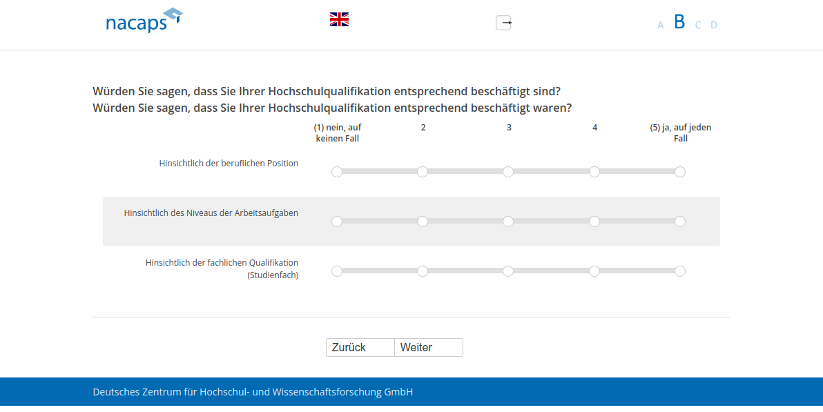 Würden Sie sagen, dass Sie Ihrer Hochschulqualifikation entsprechend beschäftigt sind?,Würden Sie sagen, dass Sie Ihrer Hochschulqualifikation entsprechend beschäftigt waren?