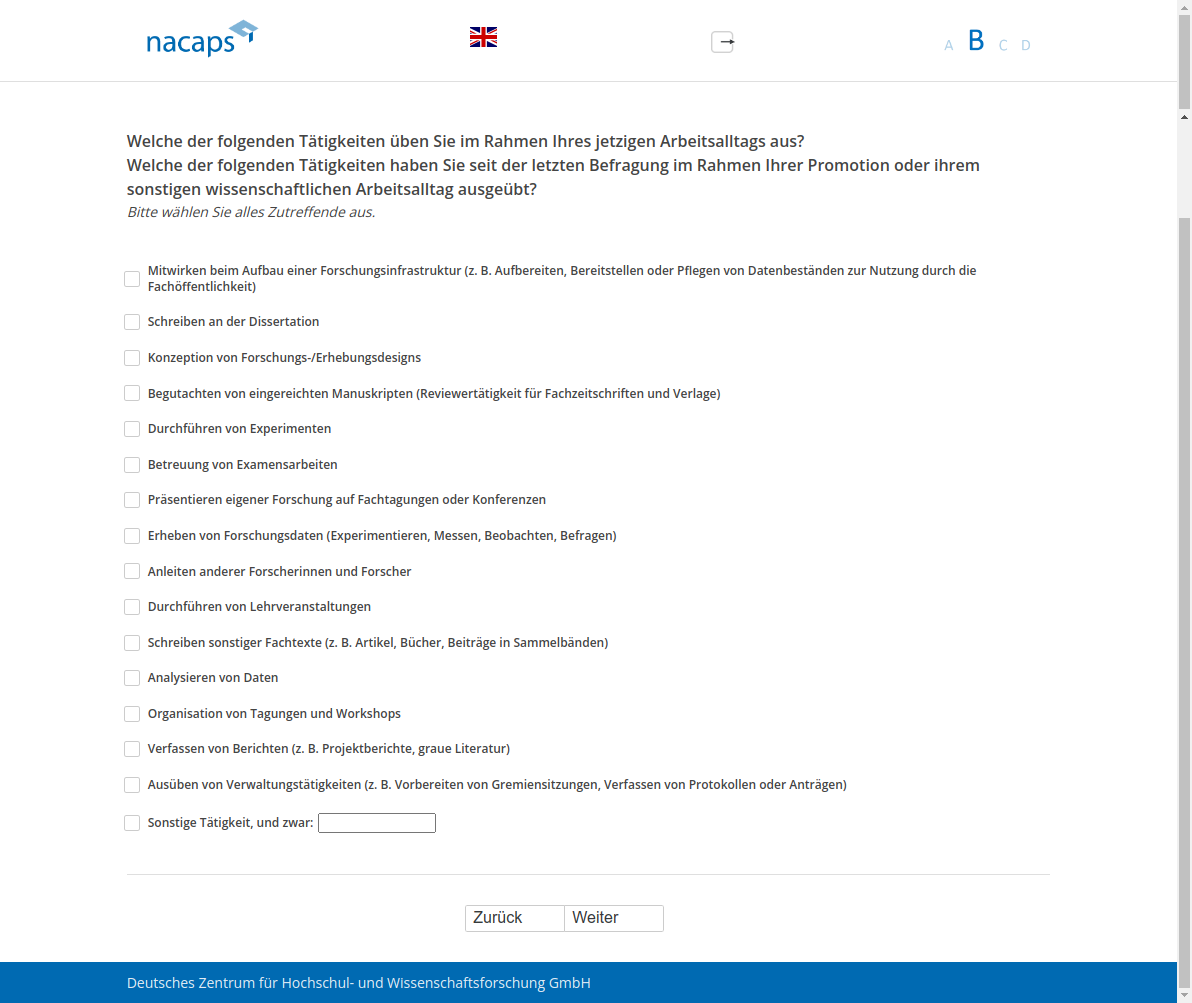 Frage C01: Fragebogen von Nacaps 2018 - Welle 2
