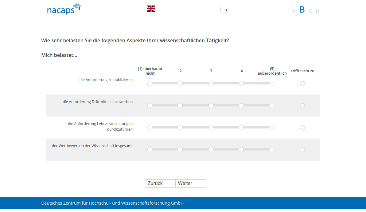 Wie sehr belasten Sie die folgenden Aspekte Ihrer wissenschaftlichen Tätigkeit? Mich belastet...