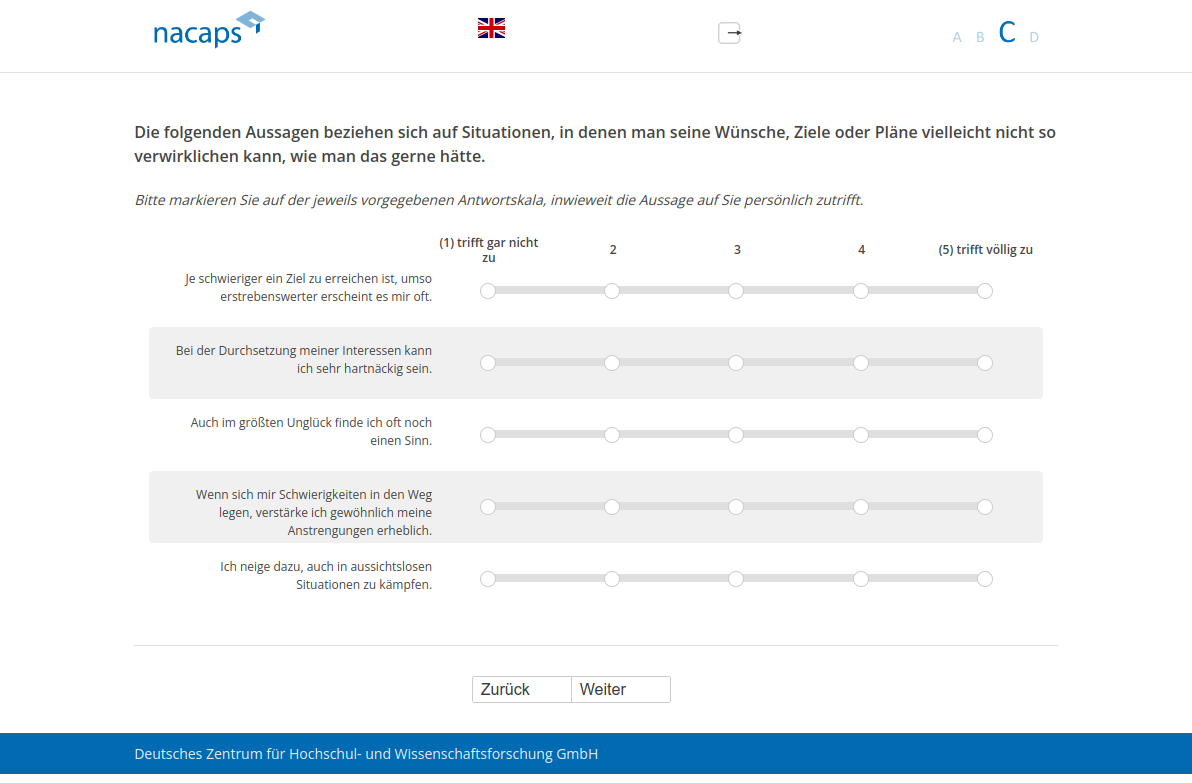 Die folgenden Aussagen beziehen sich auf Situationen, in denen man seine Wünsche, Ziele oder Pläne vielleicht nicht so verwirklichen kann, wie man das gerne hätte.