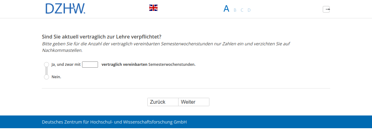 Bitte geben Sie für die Anzahl der vertraglich vereinbarten Semesterwochenstunden nur Zahlen ein und verzichten Sie auf Nachkommastellen.