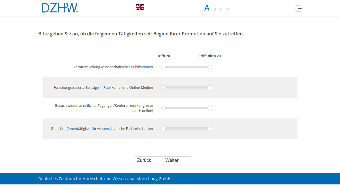 Bitte geben Sie an, ob die folgenden Tätigkeiten seit Beginn Ihrer Promotion auf Sie zutreffen.