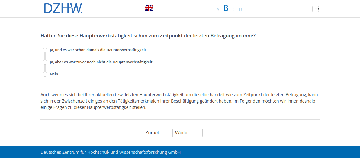 Hatten Sie diese Haupterwerbstätigkeit schon zum Zeitpunkt der letzten Befragung im #{PRELOADcpl007.value} inne?