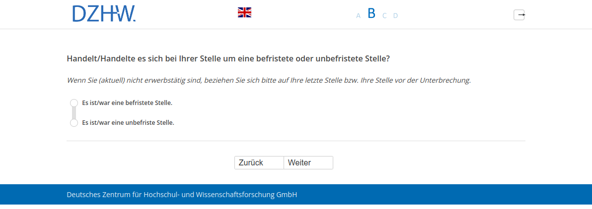 Wenn Sie (aktuell) nicht erwerbstätig sind, beziehen Sie sich bitte auf Ihre letzte Stelle bzw. Ihre Stelle vor der Unterbrechung.