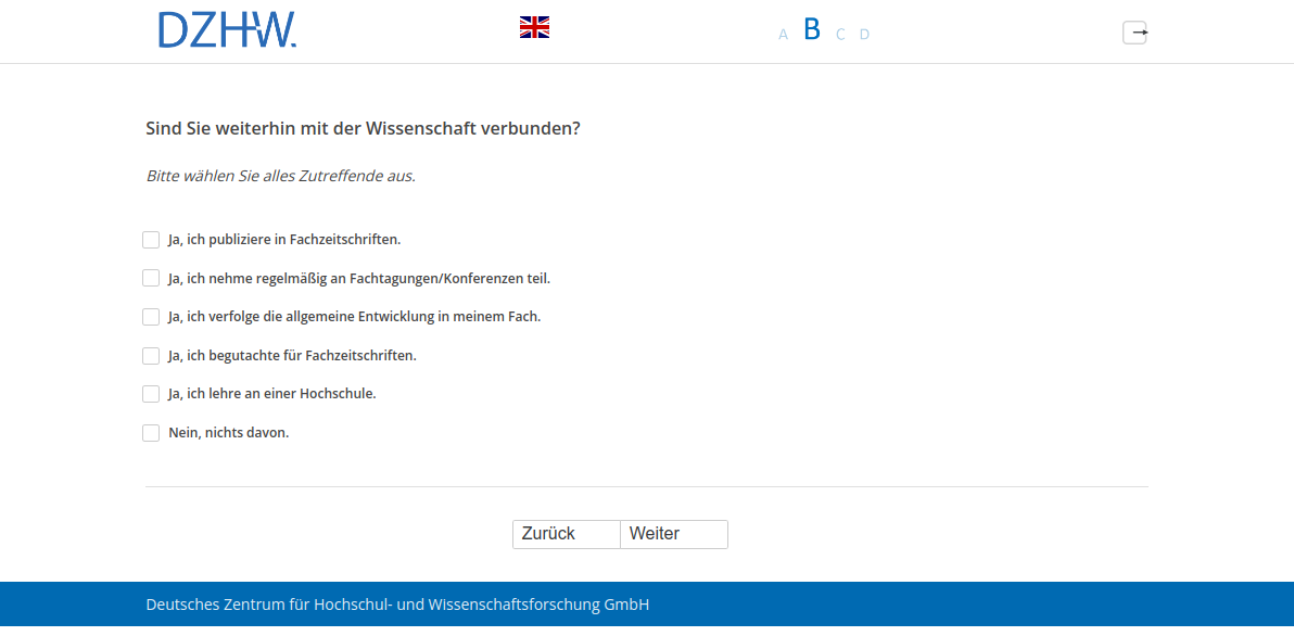 Welche der folgenden wissenschaftsbezogenen Aktivitäten sind/waren Bestandteil Ihrer aktuellen/letzten Erwerbstätigkeit?