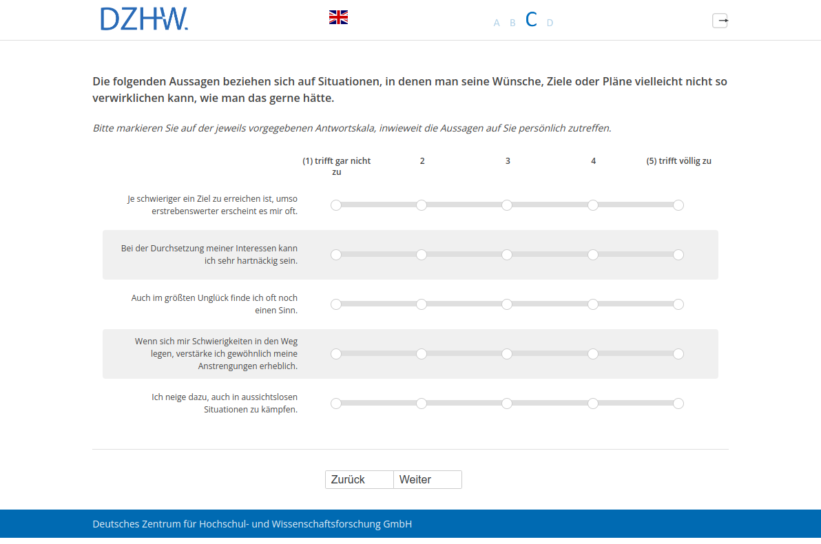 Die folgenden Aussagen beziehen sich auf Situationen, in denen man seine Wünsche, Ziele oder Pläne vielleicht nicht so verwirklichen kann, wie man das gerne hätte.