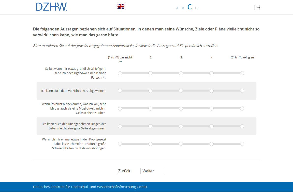 Die folgenden Aussagen beziehen sich auf Situationen, in denen man seine Wünsche, Ziele oder Pläne vielleicht nicht so verwirklichen kann, wie man das gerne hätte.