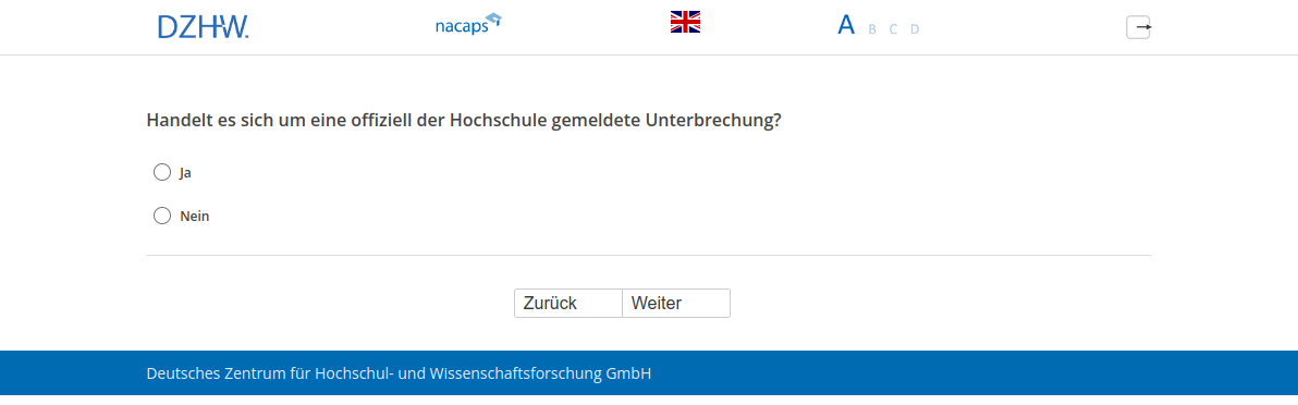 Handelt es sich um eine offiziell der Hochschule gemeldete Unterbrechung?