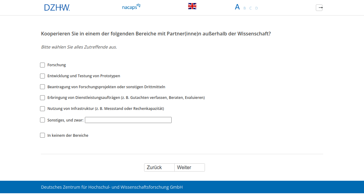 Kooperieren Sie in einem der folgenden Bereiche mit Partner(inne)n außerhalb der Wissenschaft?