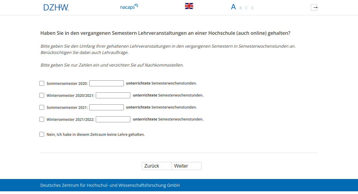 Haben Sie in den vergangenen Semestern Lehrveranstaltungen an einer Hochschule (auch online) gehalten?