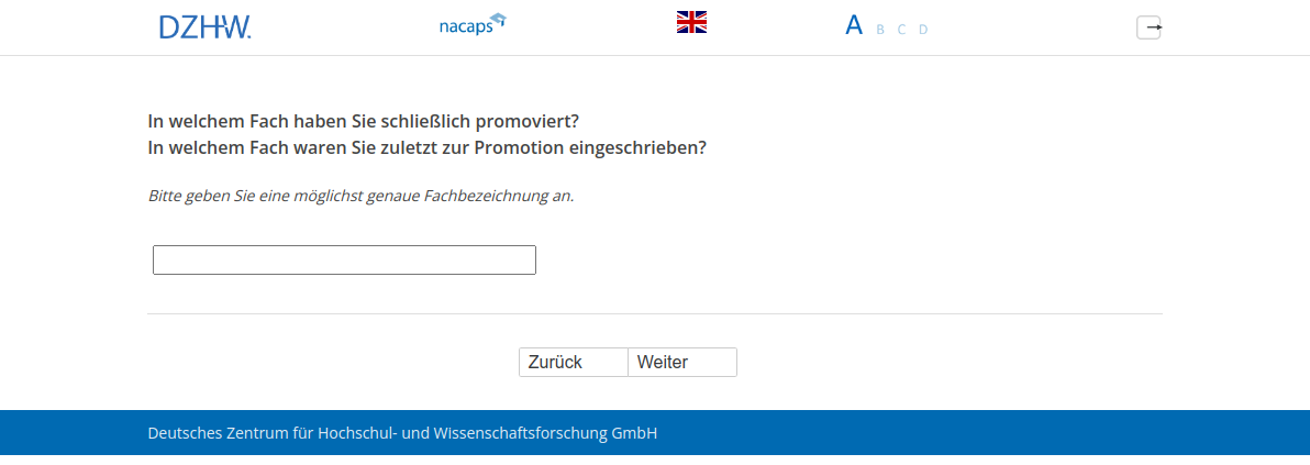 In welchem Fach haben Sie schließlich promoviert?,In welchem Fach waren Sie zuletzt zur Promotion eingeschrieben?