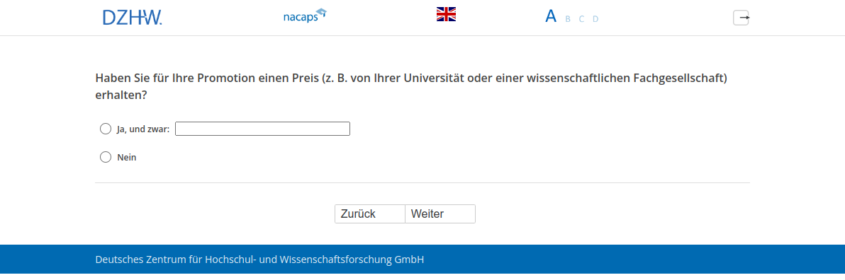 Haben Sie für Ihre Promotion einen Preis (z.B. von Ihrer Universität oder einer wissenschaftlichen Fachgesellschaft) erhalten?