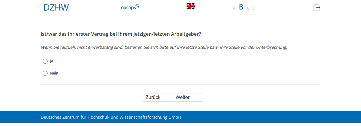 Wenn Sie (aktuell) nicht erwerbstätig sind, beziehen Sie sich bitte auf Ihre letzte Stelle bzw. Ihre Stelle vor der Unterbrechung.