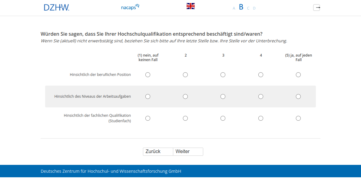 Wenn Sie (aktuell) nicht erwerbstätig sind, beziehen Sie sich bitte auf Ihre letzte Stelle bzw. Ihre Stelle vor der Unterbrechung.