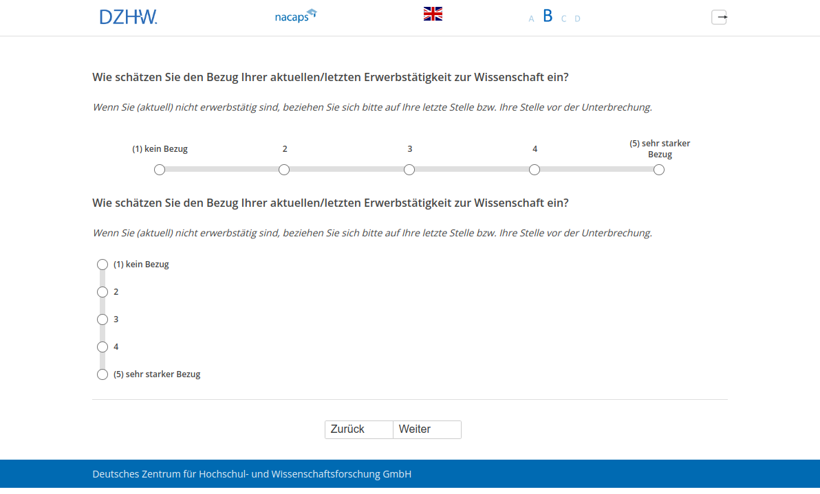 Wenn Sie (aktuell) nicht erwerbstätig sind, beziehen Sie sich bitte auf Ihre letzte Stelle bzw. Ihre Stelle vor der Unterbrechung.