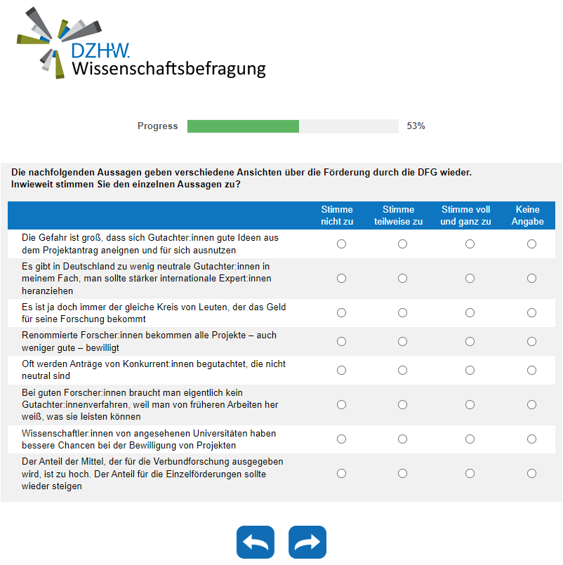 Die nachfolgenden Aussagen geben verschiedene Ansichten über die Förderung durch die DFG wieder.