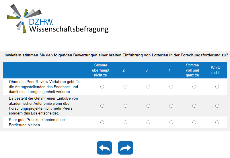 Inwiefern stimmen Sie den folgenden Bewertungen einer breiten Einführung von Lotterien in der Forschungsförderung zu?