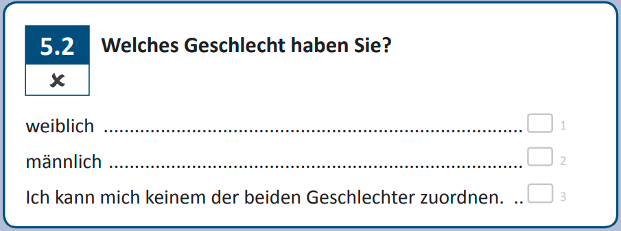 Since the question about the parents' books (question 5.1 in the standard version of the questionnaire) was not asked in the Hesse and Berlin versions, this question had the number 5.1 there.