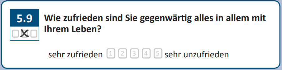 cf. Beierlein, C., Kovaleva, A., László, Z., Kemper, C. J., & Rammstedt, B. (2015). Kurzskala zur Erfassung der Allgemeinen Lebenszufriedenheit (L-1). Zusammenstellung sozialwissenschaftlicher Items und Skalen (ZIS). https://doi.org/10.6102/zis229 (modified)