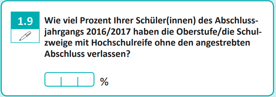 Question 1.9: Supplementary questionnaire for school principals in the DZHW Panel Study of School Leavers 2018 - first wave
