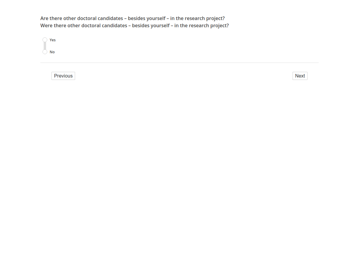 Are there other doctoral candidates – besides yourself – in the research project?/Were there other doctoral candidates – besides yourself – in the research project?