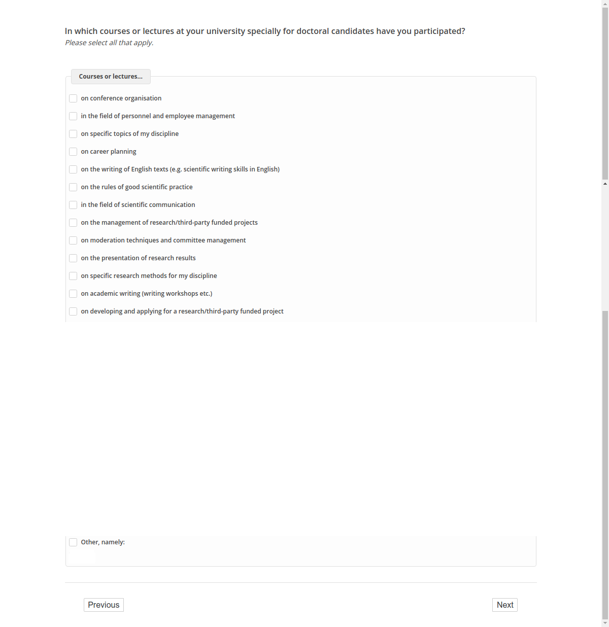 In which courses or lectures at your university specially for doctoral candidates have you participated?