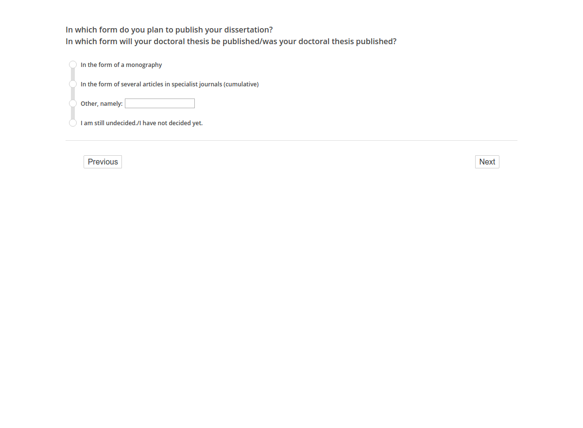 In which form do you plan to publish your dissertation?/In which form will your doctoral thesis be published/was your doctoral thesis published?