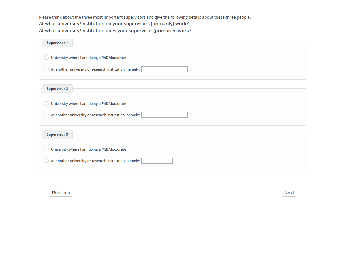 At what university/institution do your supervisors (primarily) work?/At what university/institution does your supervisor (primarily) work?