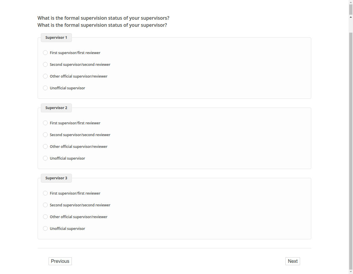 What is the formal supervision status of your supervisors?/What is the formal supervision status of your supervisor?