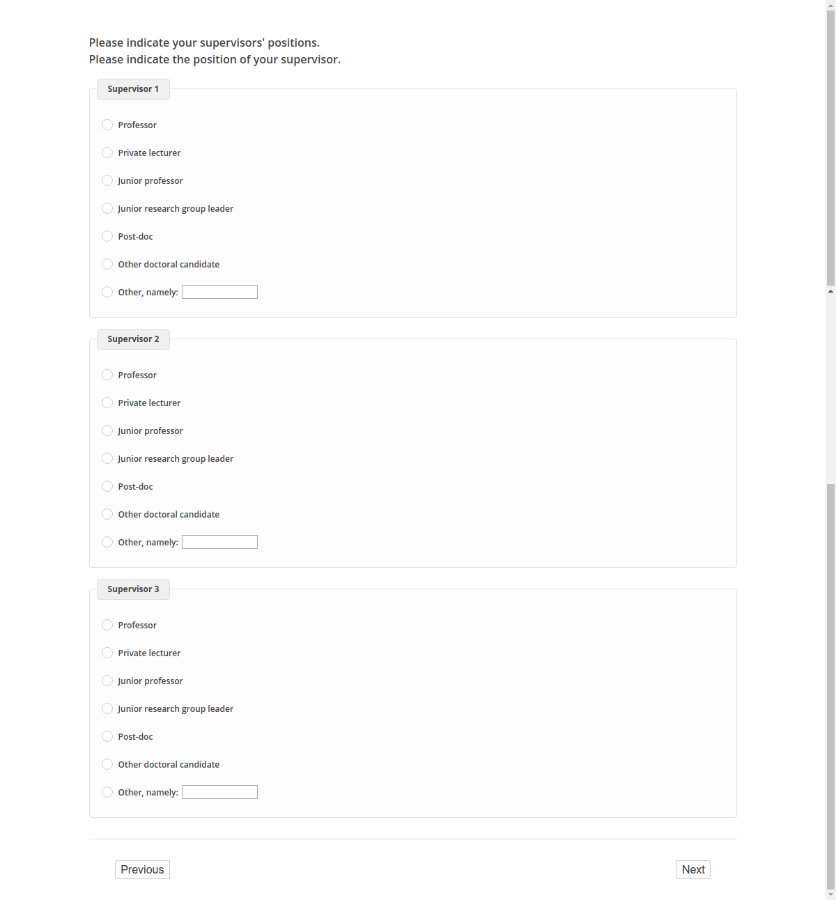 Please indicate your supervisors' positions.,Please indicate the position of your supervisor.