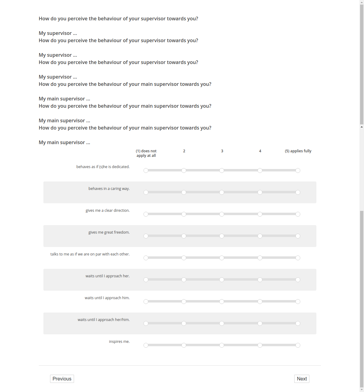 How do you perceive the behaviour of your supervisor towards you? My supervisor …/How do you perceive the behaviour of your main supervisor towards you? My main supervisor ...