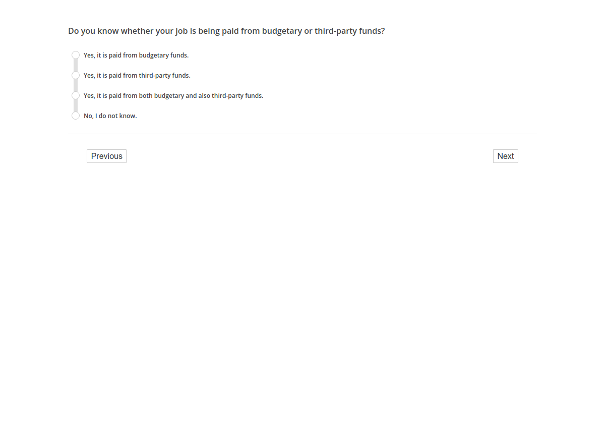 Do you know whether your job is being paid from budgetary or third-party funds?