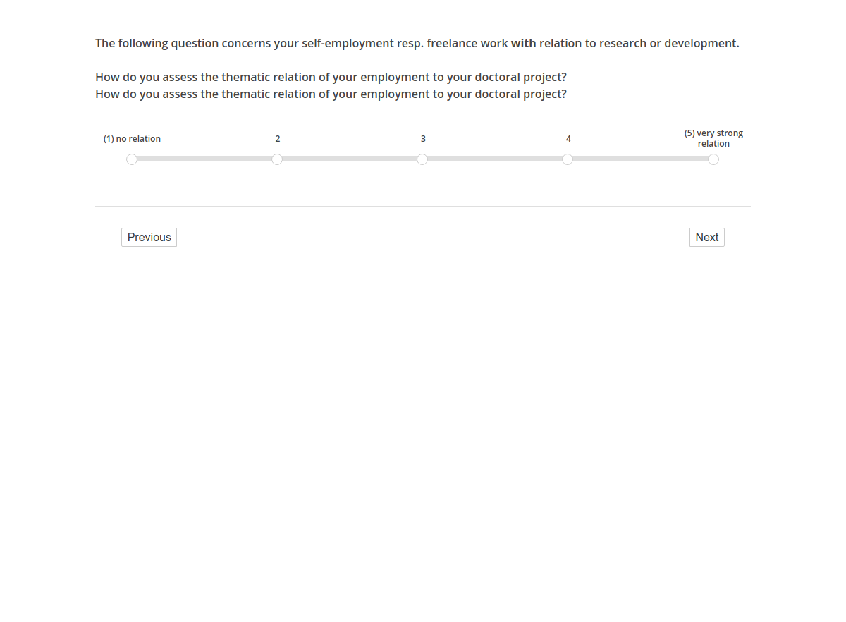 The following question concerns your self-employment resp. freelance work with relation to research or development.