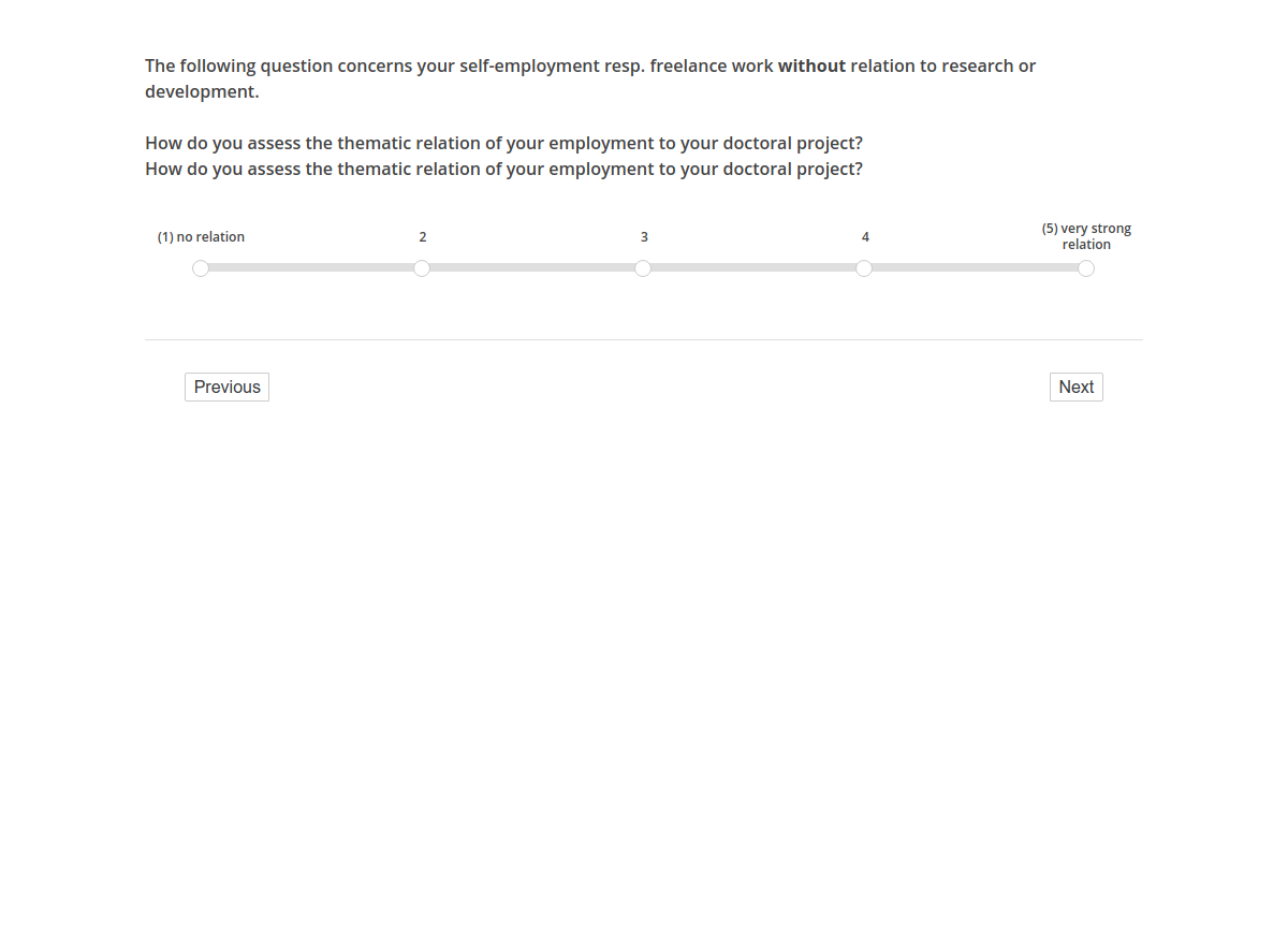 The following question concerns your self-employment resp. freelance work without relation to research or development.