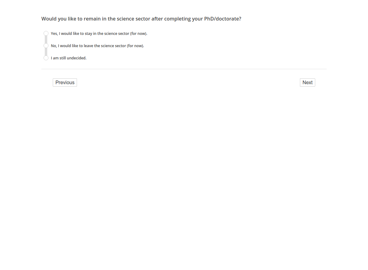 Would you like to remain in the science sector after completing your PhD/doctorate?