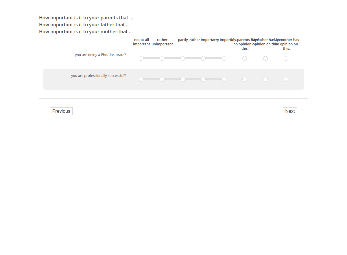 How important is it to your parents that …/How important is it to your father that …/How important is it to your mother that ...